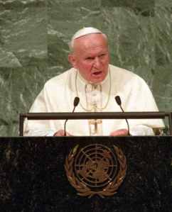 Pope John Paul II addresses the United Nations on Oct. 5, 1995
